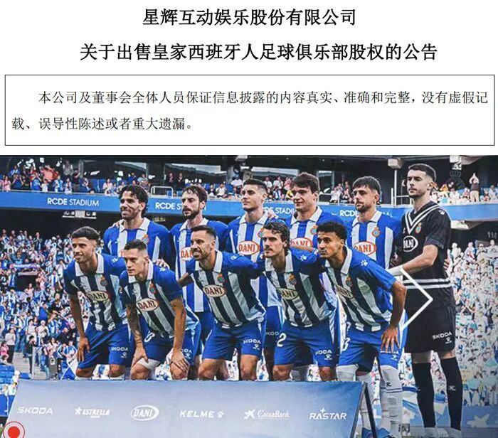 西班牙人俱乐部,后续不再纳入星辉娱乐合并报表范围。这家汕头玩具家族长达10年的足球远征,告一段落。