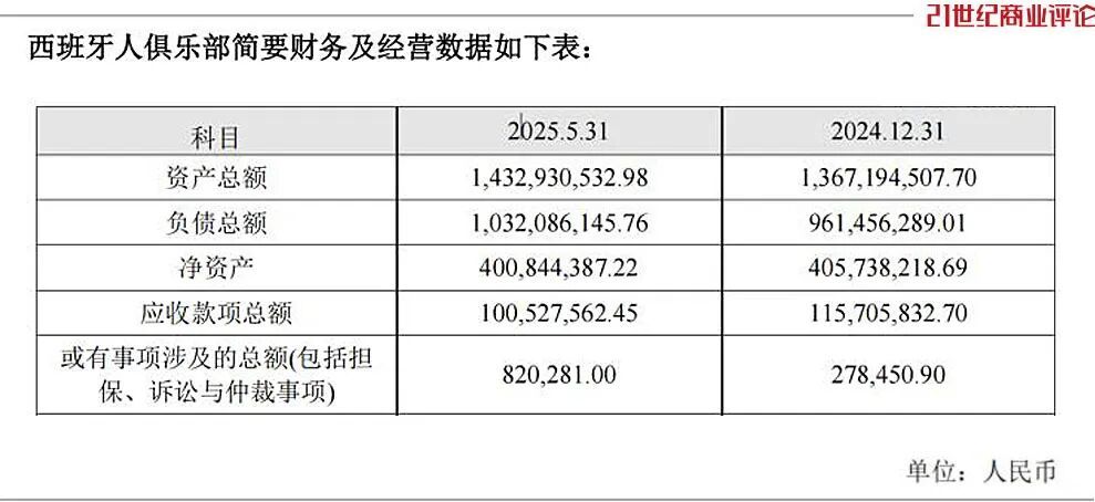 截至5月底,该俱乐部净资产为4亿元人民币。