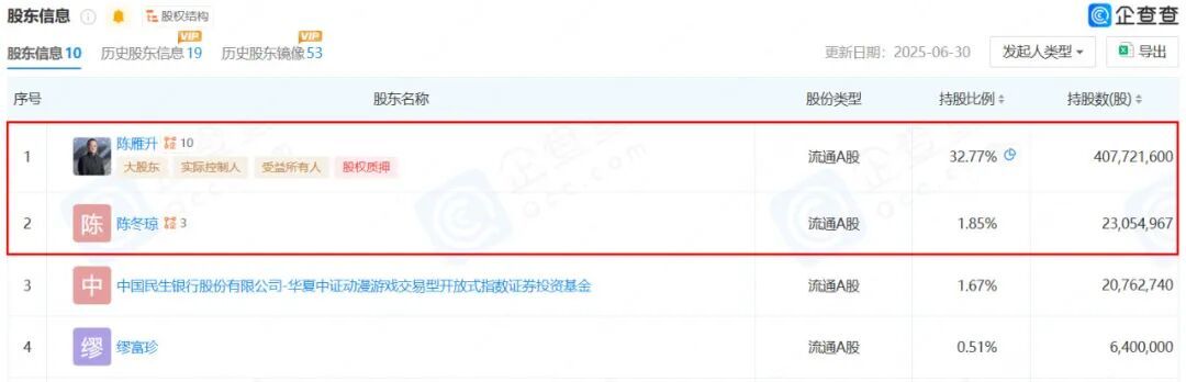 截至6月底,创始人陈雁升与陈冬琼夫妇,合计持有星辉娱乐34.6%的股份,按18日收盘价算,价值30亿元。